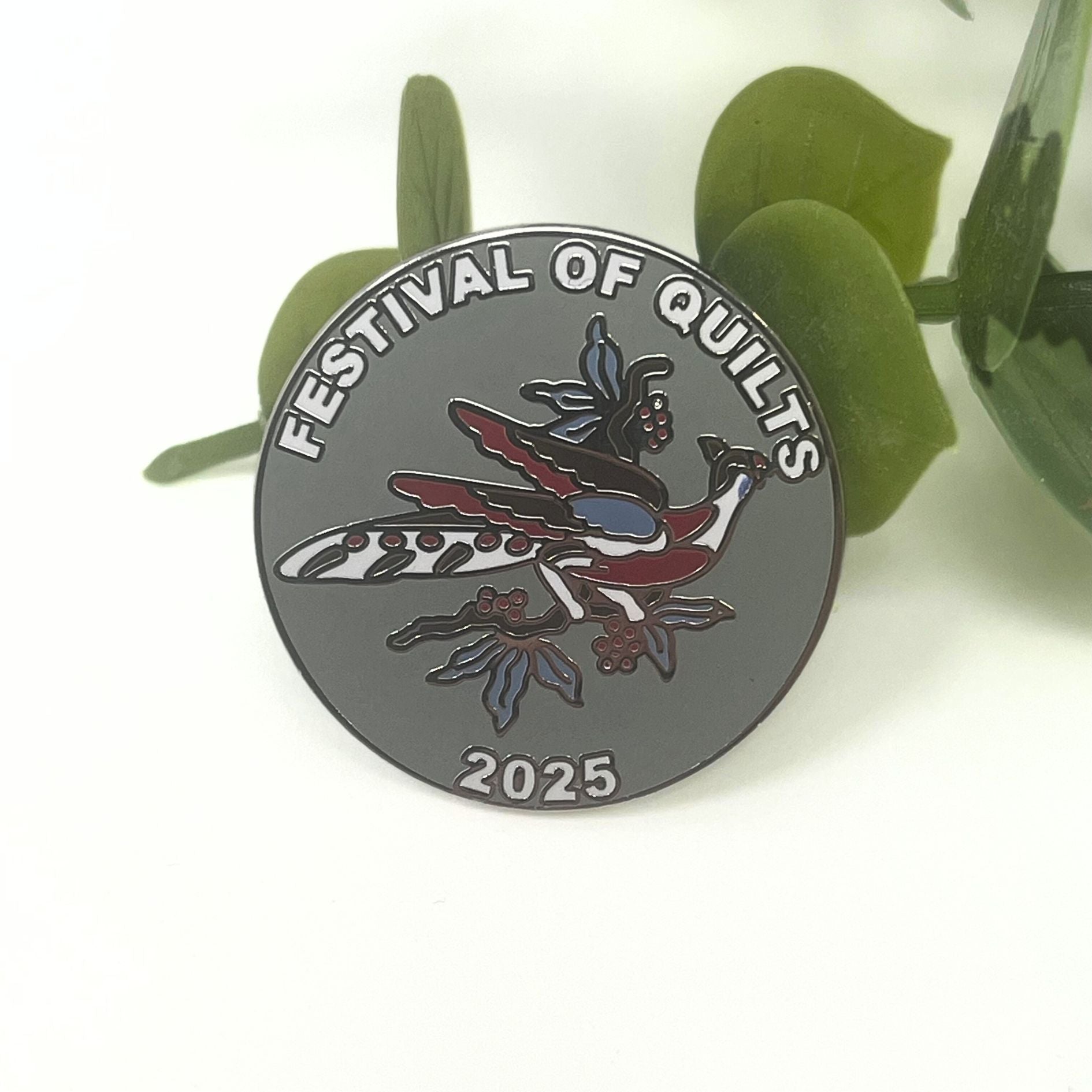 Celebrate Festival of Quilts 2025 in style with this exclusive limited-edition badge, featuring a delicate bird motif inspired by the 19th-century Broderie Perse Coverlet from The Quilt Collection.